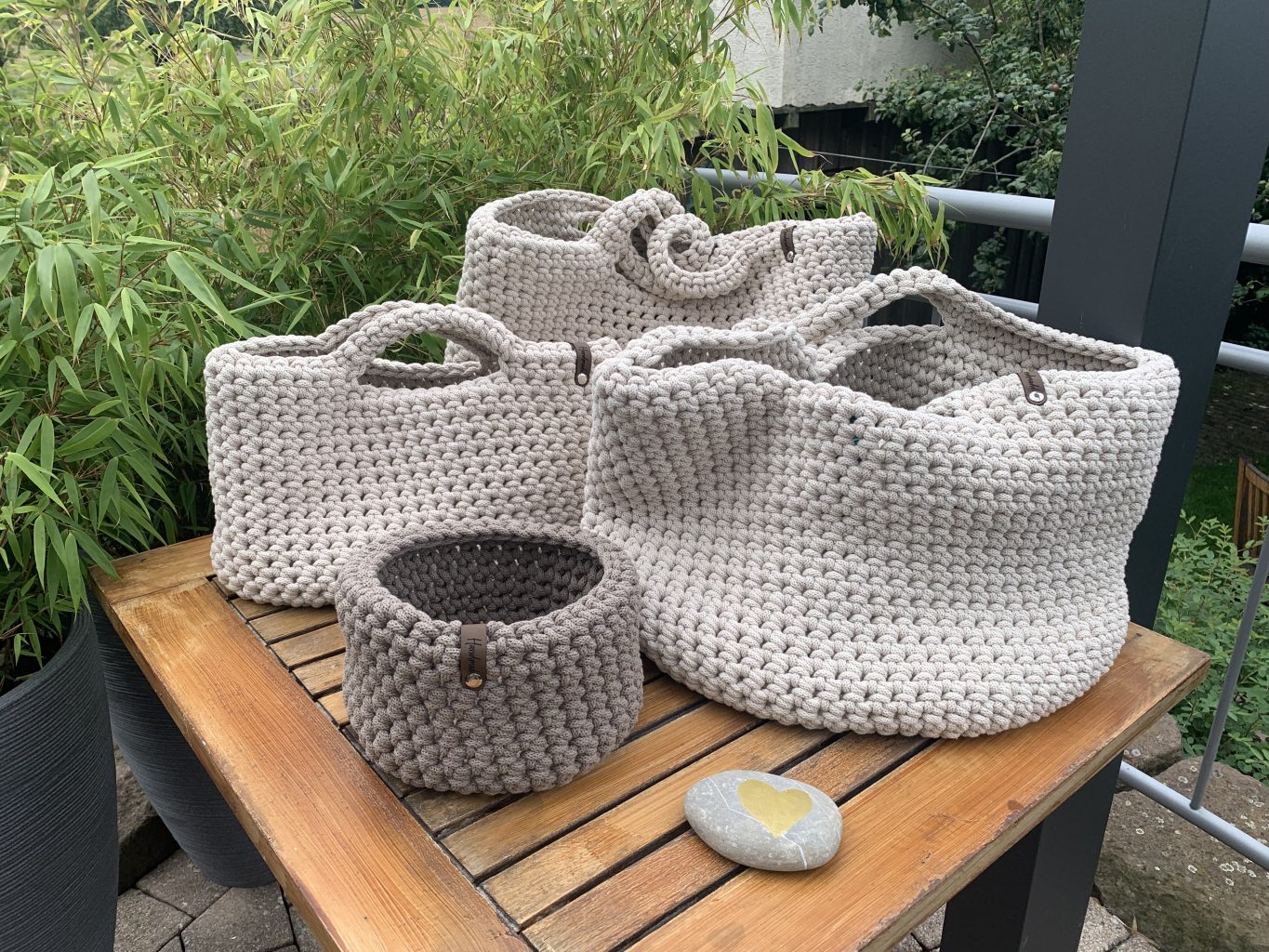 selbst gehäkelte Taschen, Körbe, Tischläufer, Tischsets und mehr …